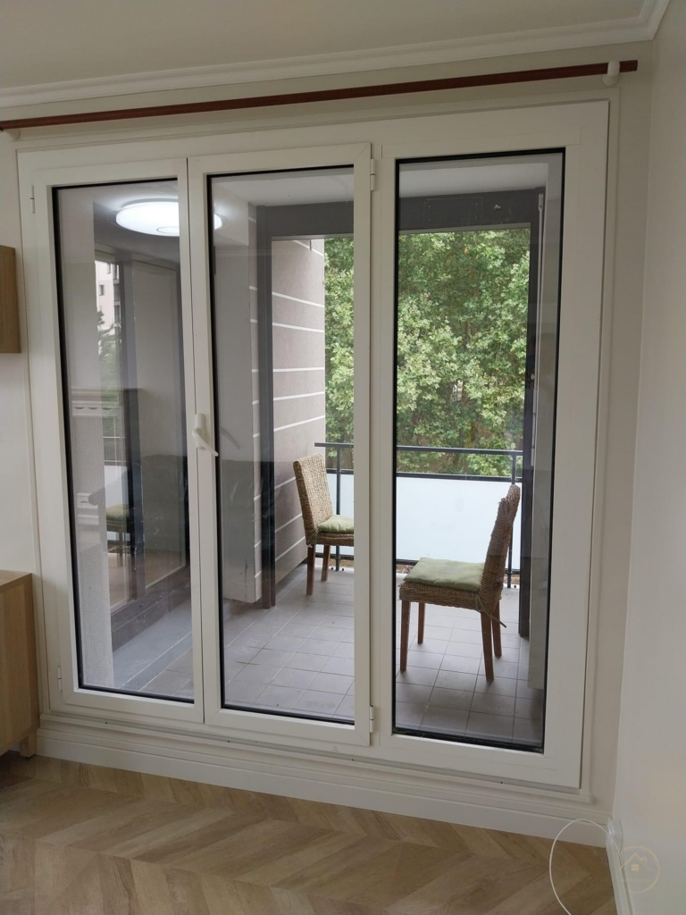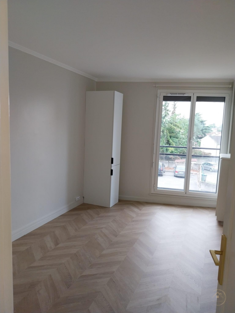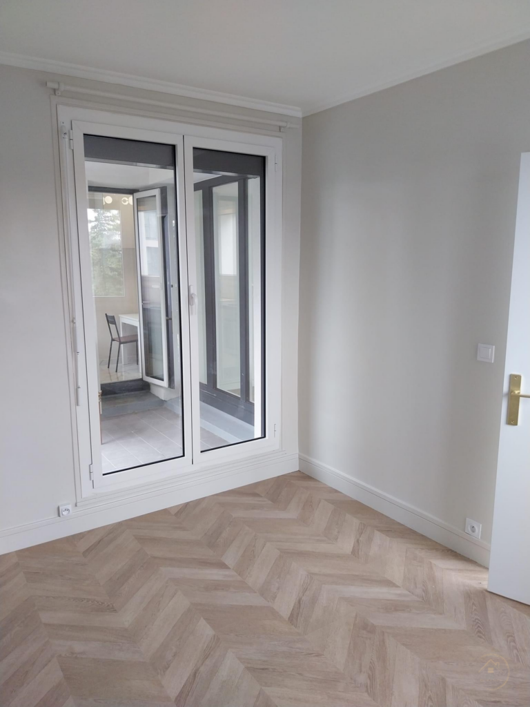 Rénovation complète avec parquet élégant et belle lumière naturelle.